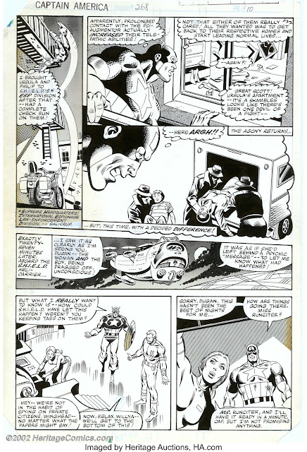 And speaking of team - ups, we round the post up with some original art pages from CAPTAIN AMERICA issue 268 which is a crossover with the DEFENDERS which wraps up in the 106th issue of their own magazine.